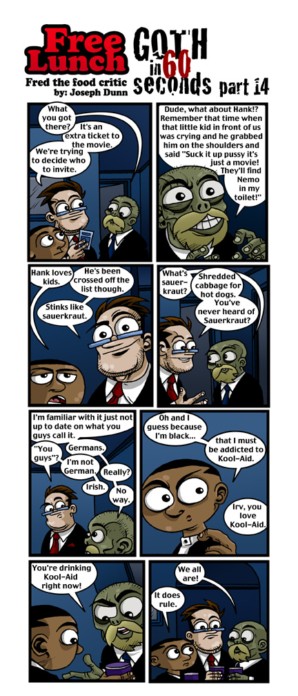 Meet Fred the Food critic, star of "Free Lunch". He?s a filthy slob with a bottomless stomach and an unkind word for everyone. Visit Fred each week as he and his cohorts get into mix up after mix up of food related fun.