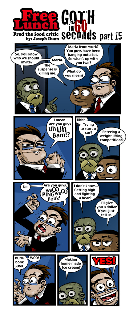 Meet Fred the Food critic, star of "Free Lunch". He?s a filthy slob with a bottomless stomach and an unkind word for everyone. Visit Fred each week as he and his cohorts get into mix up after mix up of food related fun.