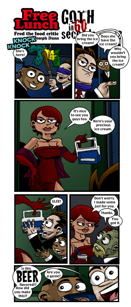 Meet Fred the Food critic, star of "Free Lunch". He?s a filthy slob with a bottomless stomach and an unkind word for everyone. Visit Fred each week as he and his cohorts get into mix up after mix up of food related fun.