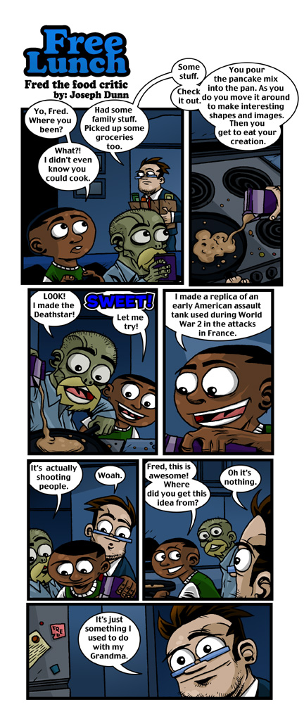 Meet Fred the Food critic, star of "Free Lunch". He?s a filthy slob with a bottomless stomach and an unkind word for everyone. Visit Fred each week as he and his cohorts get into mix up after mix up of food related fun.
