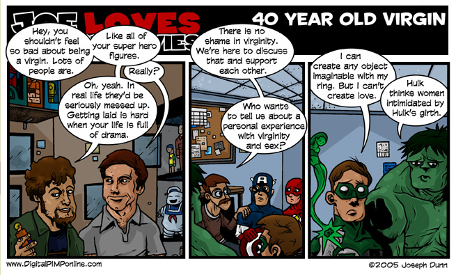 Steve Carell's Andy is the kind of guy you feel sorry for. Or make fun of. Or both. First one, then the other. But why? He's happy, and content, and he doesn't hurt anyone. Should he feel bad because he's 40 years old, and a virgin? Well this movie would have you think that. It's not the flagship film about how cool abstinence is, that the Catholic Church was hoping for. Everyone in this movie, including Andy is ready for Andy to get some.